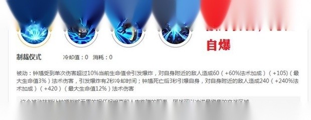 被动这个技能有两个用处,第一个是自身受到伤害会触发爆炸,类似于钟馗的一技能,可以对敌人形成很好的消耗效果。第二个是死亡后爆炸,可以造成巨额的法术伤害,但是有一定的延迟。第一个被动要求我们贴身打输出,爆发更高,第二个被动有两秒延迟,一般用来清理兵线,能否炸到人看缘分。