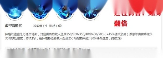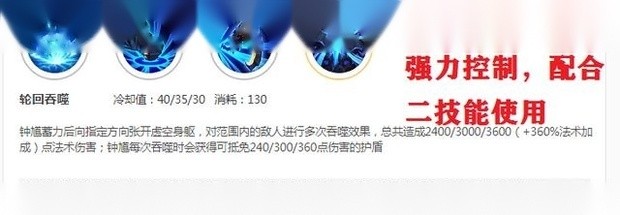 一技能是钟馗的主要输出,拥有着很高引众局轴触拉字买的伤害,最为致命的是如果敌人在钟馗身边可以形成2.5倍伤害,后期一个近身一技能就可以打掉脆皮三分之一血量,如果是纯法强的钟馗伤害更高。近身伤害高,所以利用钟馗的二技能和一技能衔接起来可以瞬间打出高额伤害。