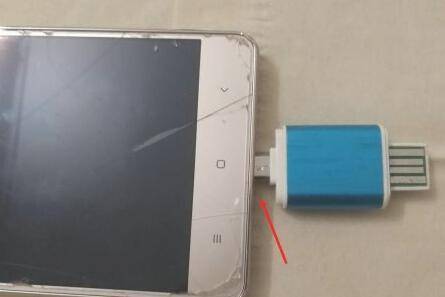 3、接着将手机读卡器插入手机中。