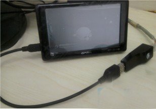 3、插入OTG连接线,然后将USB转RJ45接口的转换器(各平板电脑对USB转RJ45接口转换器主控芯片有要求,购买时需连接卖家进行确定)接到OTG线上: