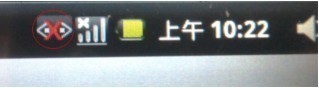 6、此时接上网线,转换器上的红灯就会有规律的灯动,屏幕上方状态栏图标如下图:
