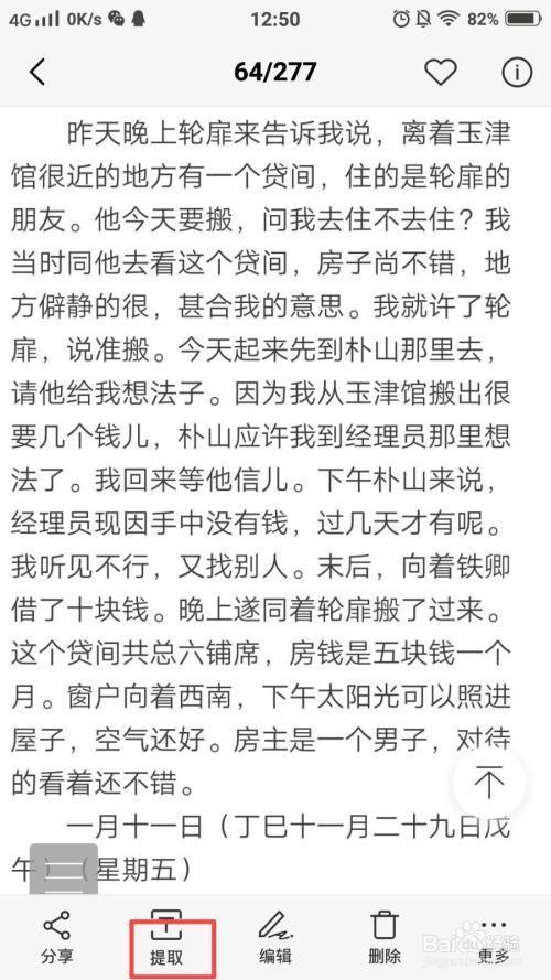 找到一张带有文字的图片,如图所示,点击【提取】;