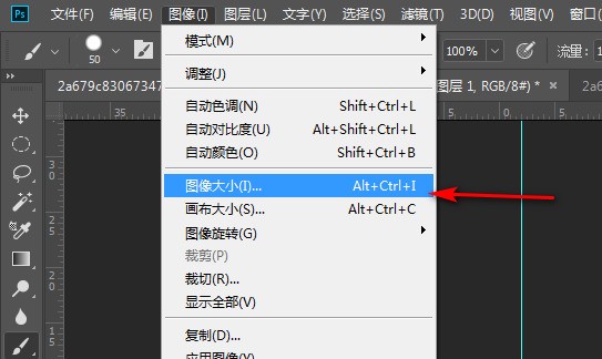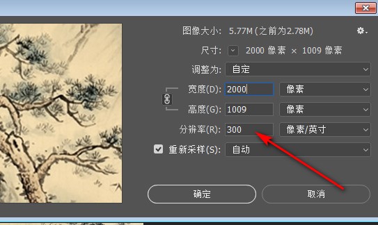 2、如果图特别大,直接爆了3MB,那就降下分辨率(差不多就行,别太狠)。点图像→图像大小调一下。