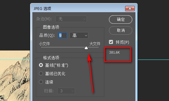 6、存的时候注意看着文件大小,调一调质量,确保低于3MB就OK啦~最后点确定收工!