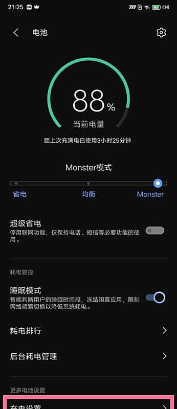 进入充电设置:在电池管理界面中,继续查找并点击“充电设置”选项,进入充电相关功能配置页面。