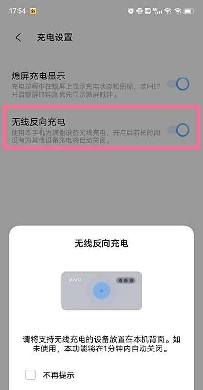在进行反向充电时,请确保手机的电量充足,以免因电量过低而影响正常使用。反向充电功能可能受到手机型号、系统版本以及连接设备兼容性的影响。如果遇到问题,请检查相关设置或咨询vivo官方客服。vivo手机设置无线反向充电的步骤如下: