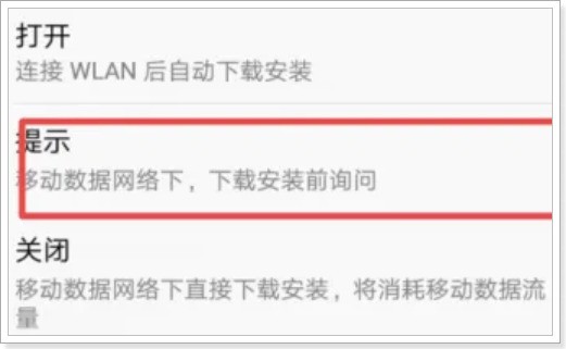 6、我们可以点击选择提示,那么在更新完成后,会进行提示,让我们选择安装或者不安装。