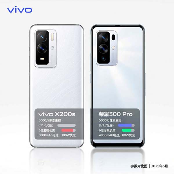以下是vivo X200s和荣耀300 Pro的参数配置详细对比(基于公开信息整理,具体以官方发布为准):