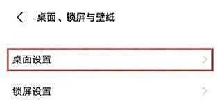 第二步:进入桌面设置在“桌面、锁屏与壁纸”界面中,找到并点击“桌面设置”选项,进入桌面布局管理页面。