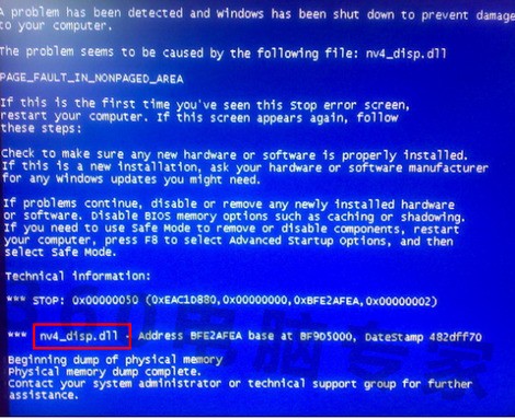一般情续带核度仍况下蓝屏都会在蓝屏信息里有体现,上图标红处就是由于nv_disp.dll这个dll引起的。