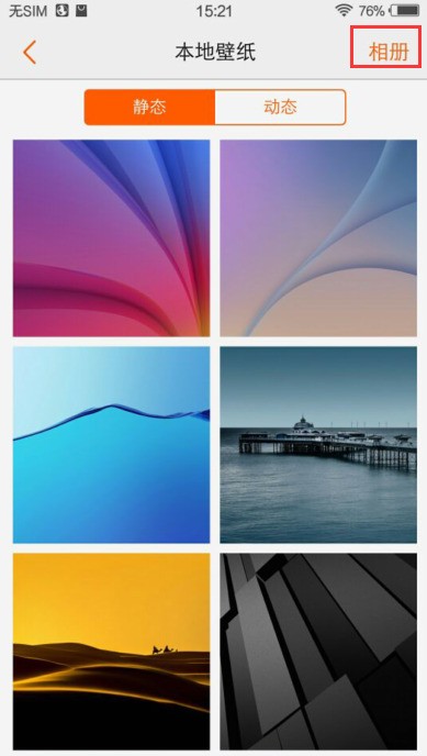 若是设置相册中的图片版为壁纸,需要点击本地壁纸的右上角相册选择以前设置的图片设置。权