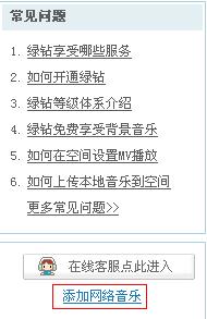 1.进入空间,点音乐盒--添加背景音乐 (在右侧)—添加网络音乐 (把网页往下拉,在最下面,同样在右侧)