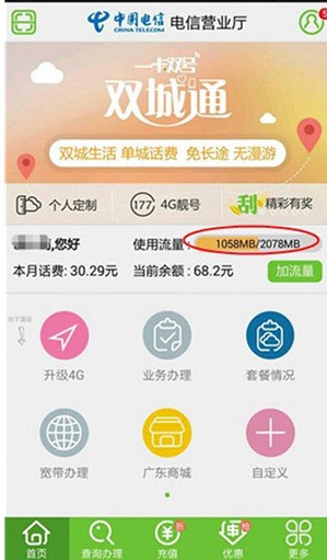 打开掌上营业厅客户端即可查看到流量使用情况。