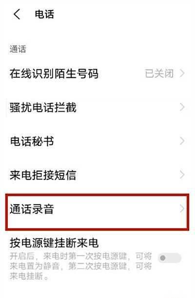 在“电话”设置界面中,找到并点击“通话录音”选项。此时系统会提供两种录音模式供选择: