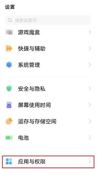进入应用与权限设置:打开vivox70pro+手机,在主界面找到并点击“设置”菜单,选择“应用与权限”选项。