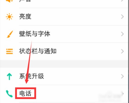 2.进入设置页面后,下滑屏幕,找到电话选项。