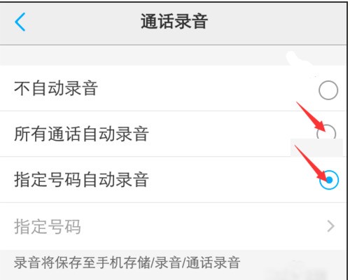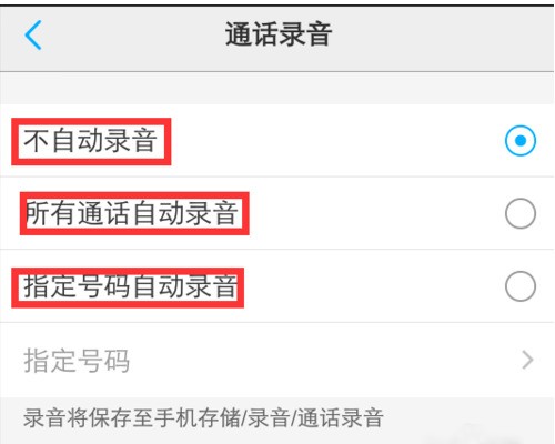 4.通话录音里面有“不自动录音”、"所有通话自动录音”、“指定号码自动录音”三种录音方式。