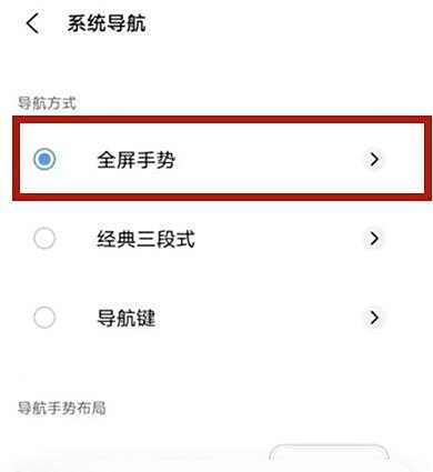 勾选【全屏手势】:在系统导航页面中,找到“导航方式”选项,点击并勾选“全屏手势”。