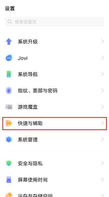 在设置菜单中,向下滑动找到“快捷与辅助”选项并点击进入。此模块集中了手势操作、快捷指令等便捷功能。