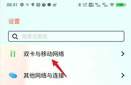 选择双卡与移动网络:在设置菜单中下滑页面,找到并点击“双卡与移动网络”选项。