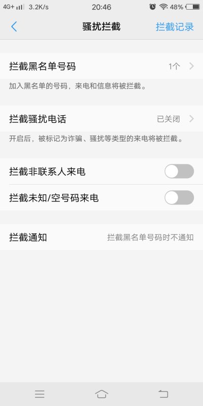 选择拦截黑名单号码,将需要添加的黑名单添加即可。