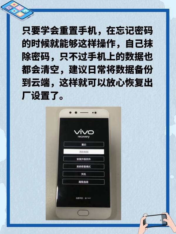 只要学会重置手机,在忘记密码的时候就能够这样操作,自己抹除密码,只不过手机上的数据也都会清空,建议日常将数据备份到云端,这样就可以放心恢复出厂设置了。