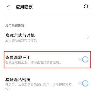 激活隐藏应用查看:将【查看隐藏应用】开关拨至开启状态,系统会提示输入隐私密码进行二次确认。