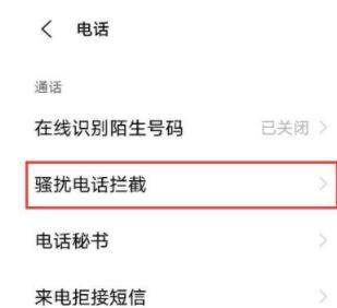 开启骚扰电话拦截:点击【骚扰电话拦截】,开启【骚扰电话】开关即可。