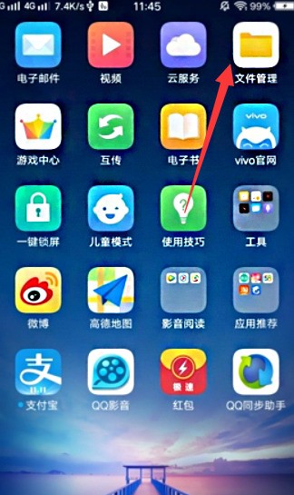 1.首先打开vivo手机主界面,从应用程里找到【文件管理】选项按钮,如图所示。