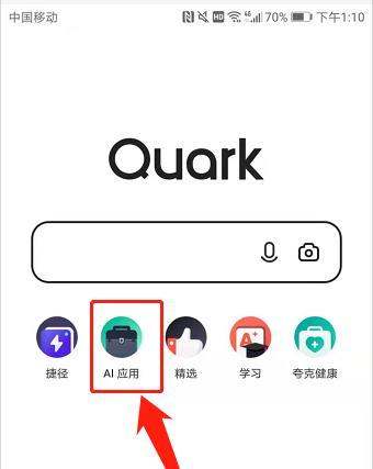 进入AI应用页面:浏览器首页底部或侧边栏通常有“AI应用”入口(具体位置可能因版本略有差异),点击进入后可见夸克提供的智能工具集合。