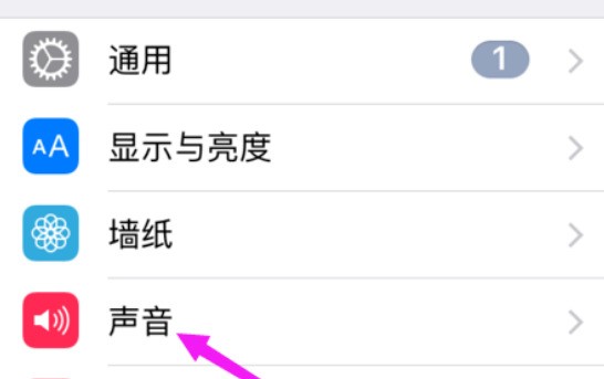 2、在设置页面中,点击选择“声音"这一设置项,进入iPhone的声音管理页面。