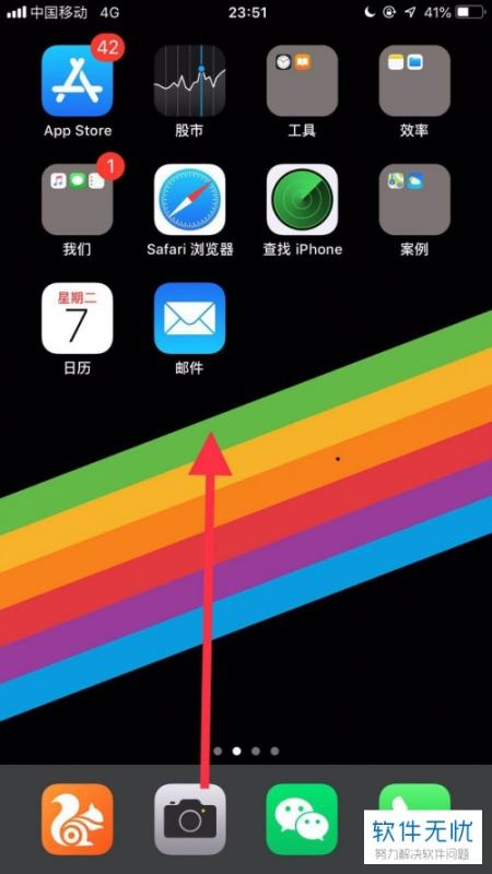 具体如下:1. 我们先在苹果手机的界面向上滑动,如图。