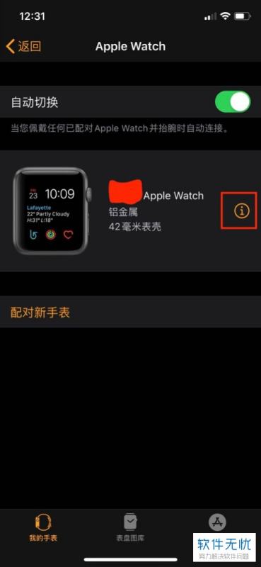 手动选取:在iPhone上打开Apple Watch App,轻点“我的手表”>屏幕顶部的“所有Apple Watch”>关闭“自动切换”。