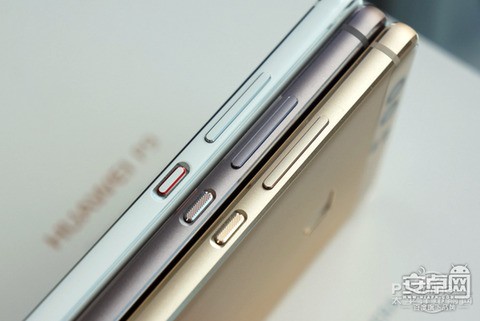 此外,华为P9的电源键和音量键均设置在机身右侧,而且陶冶白配色版华为P9的电源键和其它配色版本也不一样,陶冶白配色版华为P9的电源键表面并没有采用纹路处理,但使用了红圈装饰。