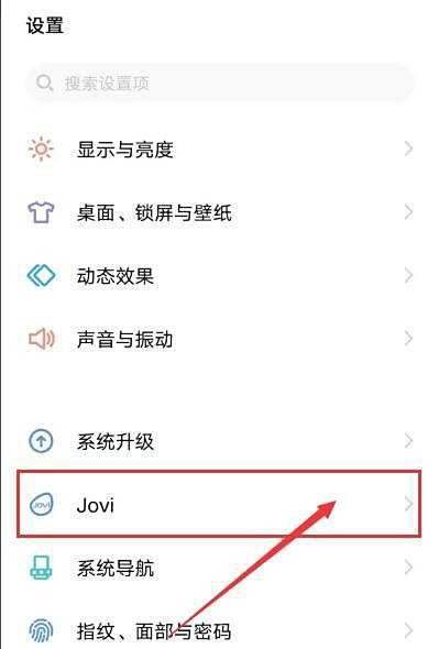 定位Jovi功能在设置菜单中,找到并点击Jovi选项(通常位于搜索栏下方或分类列表中)。