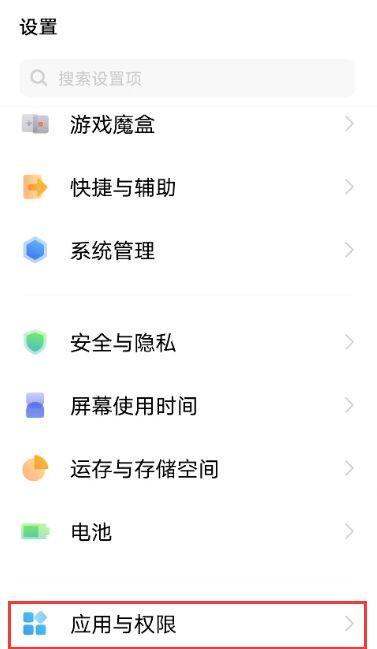 在设置菜单中,滑动屏幕找到“应用与权限”选项,点击进入该模块。此选项通常包含应用管理及系统功能配置。