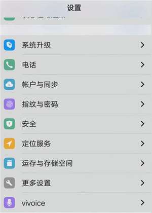 1、打开你的vivo手机【设置】,vivo手机中大部分功能设置都是在【设置】中完成。点击进入【设置】界面后你可以看到系统升级、电话、账户与同步、安全等多种内容。往下滑动找到【定位服务】,这才是我们要找的关键。