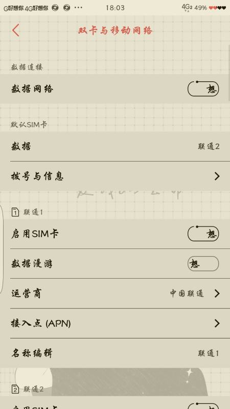 2、点击--【双卡与移动网络】