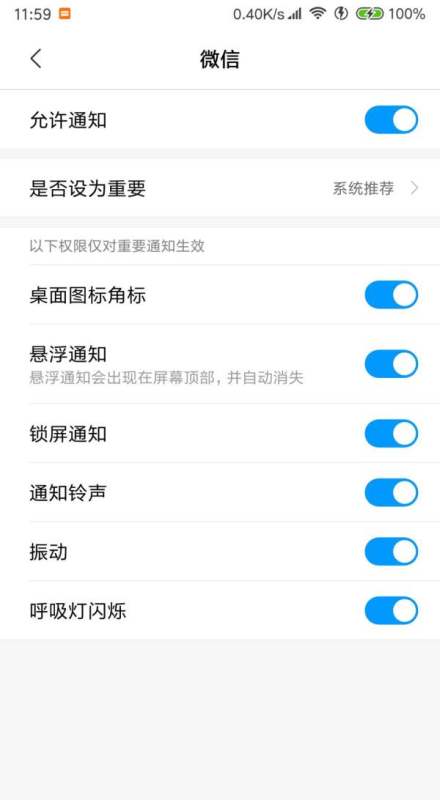 方法三:开启通知管理中的所有权限若前两步仍无效,需检查通知管理设置:进入设置——通知和状态栏——通知管理,找到微信并点击,确保所有通知权限均已开启(如“允许通知”“锁屏显示”“悬浮通知”等)。