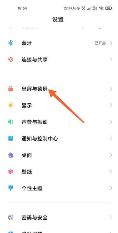 在设置菜单中,向下滑动屏幕,找到并点击“息屏和锁屏”选项。此选项位于“显示”或“个性化”分类下,具体位置可能因系统版本略有差异。
