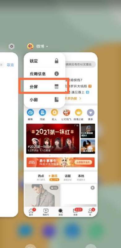 方法一:通过后台应用分屏