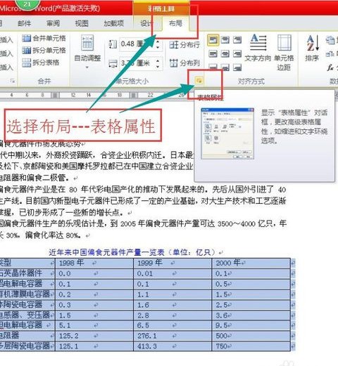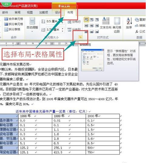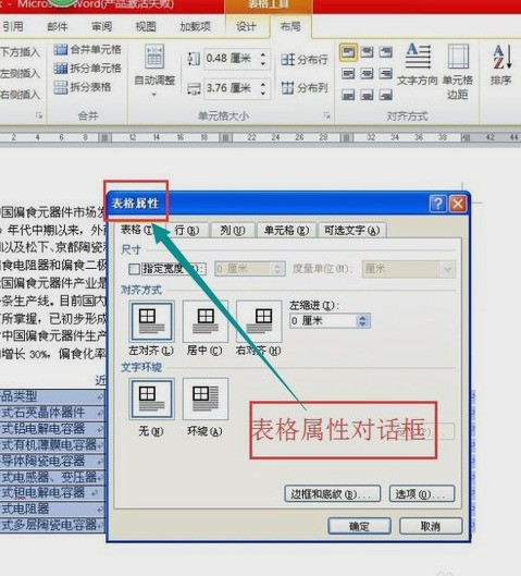 2、选择布局---表格属性。