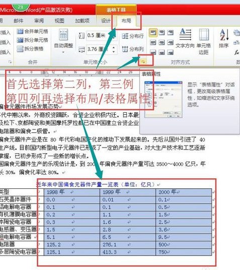 8、选择第二列,第三例,第四列。选择布局--表格属性。