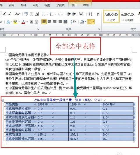 1、全部选中表格。