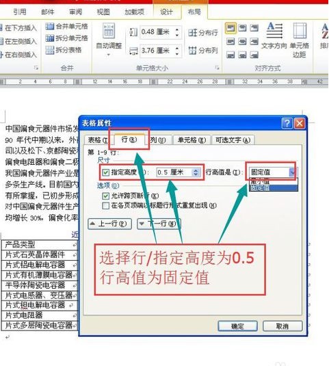 4、选择行---指定高度0.5---行高值选择固定值。最后确定。