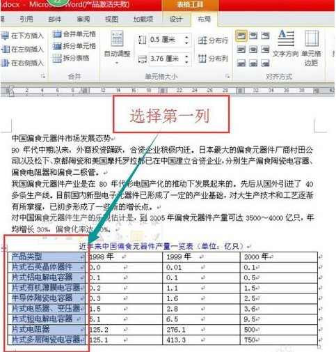 5、设置列,选择第一列。