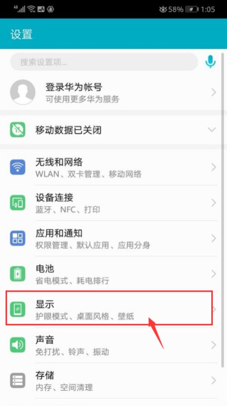 二、进入到荣耀V10手机的设置界面以后,下拉菜单找到”显示“一项,然后点击进入。