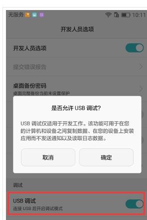 5、开启USB调试。