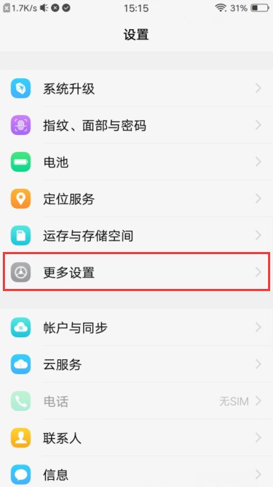 首先,打开手机上的“设置”应用。找到更多设置:
