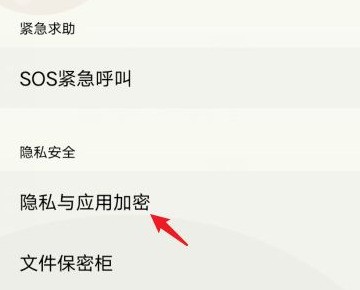 3、接着在打开的页面中,点击隐私与应用加密的选项。